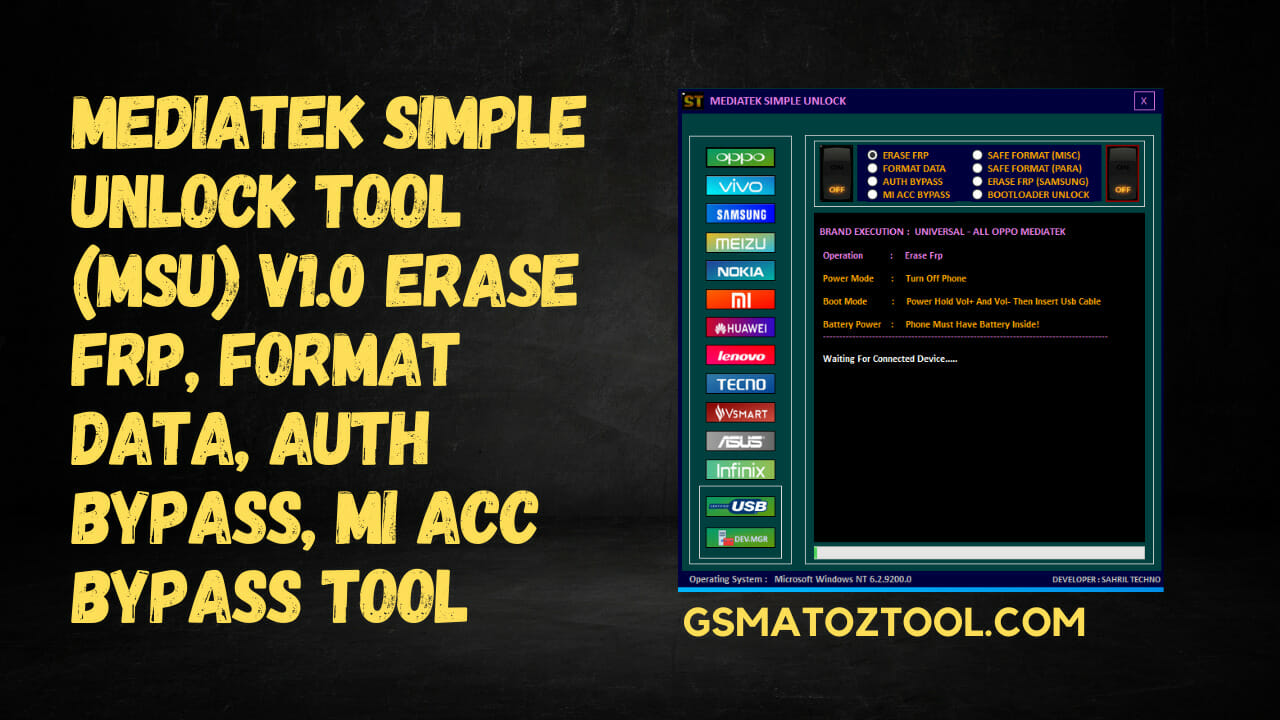The Mediatek Simple Unlock Tool (MSU) v1.0 is a free program that can be used to unlock Mediatek devices. It is a simple tool that is easy to use and does not require any technical knowledge. The tool is compatible with all Mediatek devices.