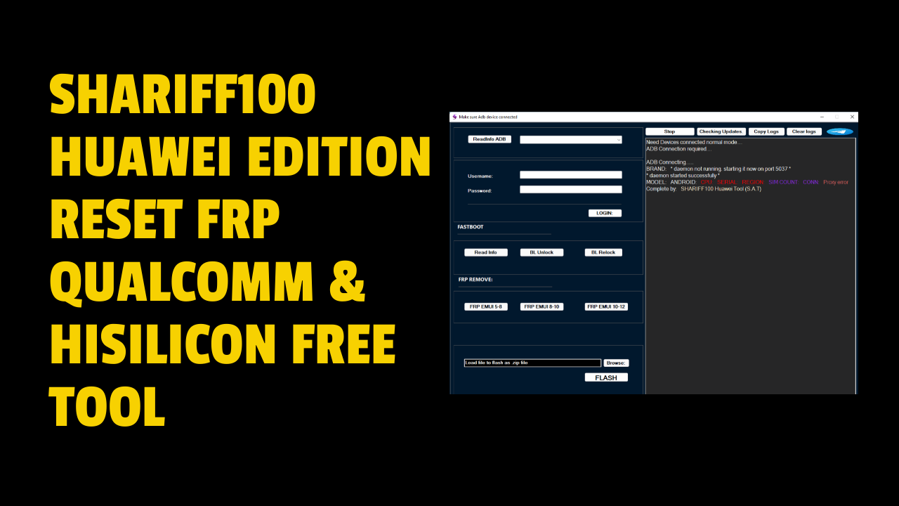 SHARIFF100 Huawei Edition is a free Windows FRP & ID removal software developed by Sanjay to unlock FRP from any Huawei, Honor EMUI & MagicUI Android phone easily within a few minutes.